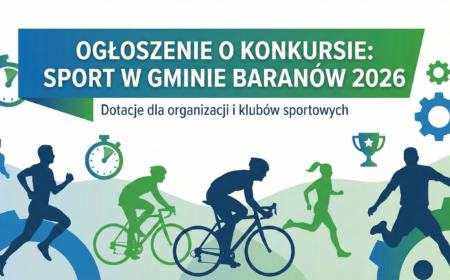 Wójt Gminy Baranów ogłasza otwarty konkurs ofert na realizację zadań publicznych w zakresie wspierania i upowszechniania kultury fizycznej i sportu na terenie Gminy Baranów w 2026 roku